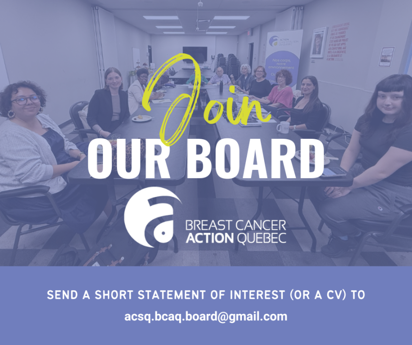 With your support BCAQ is working hard to get vital information about environmental and chemical links to breast cancer to the public, and we now know that our message is being heard.